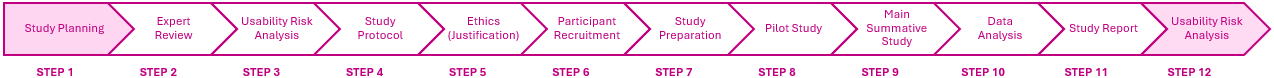 Our process for performing Summative Usability Studies is a 12-step sequence: